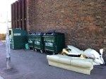 In September last year, residents in Langton Rise, with the help of the Association, successfully campaigned to have a set recycling bins – that were encouraging a lot of flytipping – (see photo) moved from Langton Rise to a more suitable location on Wood Vale. The removal of the recycling bins led to a near complete overnight eradication of the fly-tipping problem. All was well until mid-June when a brand new clothing bank was proudly placed on the site where the old one used to be (see second photo).